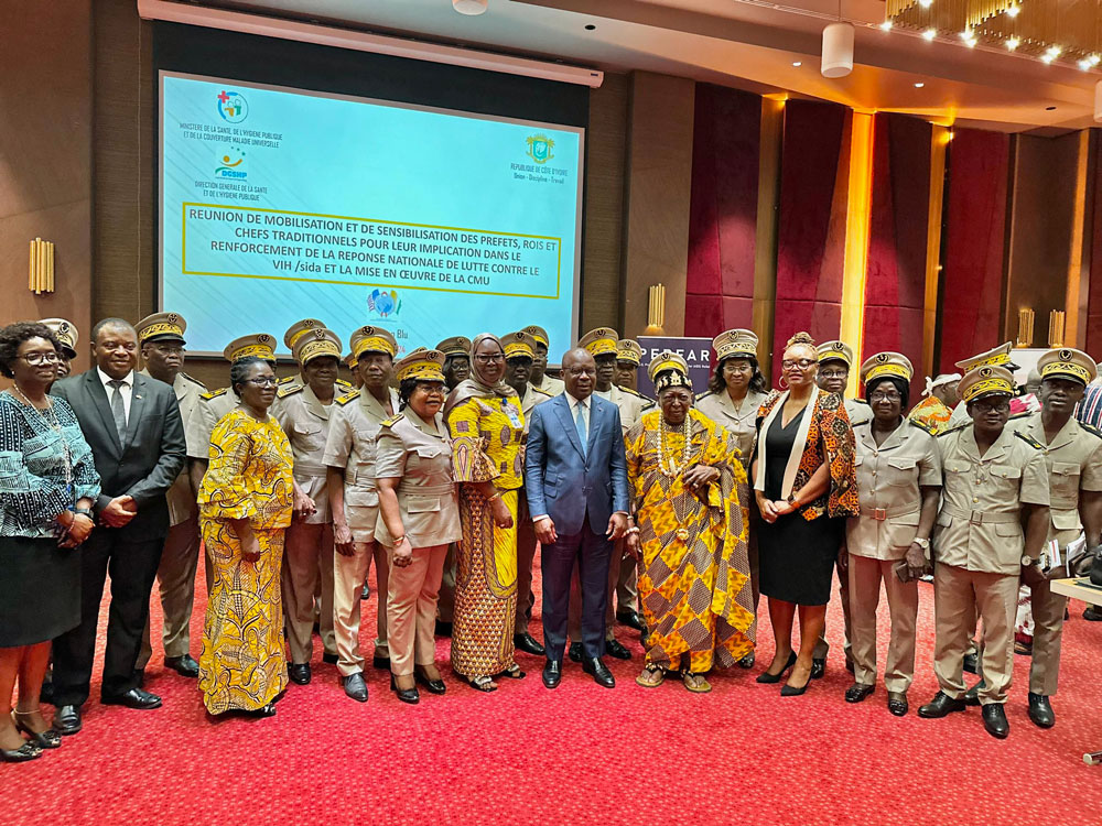 La Chambre nationale des rois et chefs traditionnels de Côte d’Ivoire s'est engagée à renforcer la lutte nationale contre le VIH/sida et à promouvoir la Couverture Maladie Universelle (CMU). Lors d'une réunion organisée par le ministère de la Santé le 4 avril 2024 à Abidjan, le président de la chambre a exprimé son soutien au gouvernement dans cette noble cause. Dr Offia-Coulibaly Madiarra, Directrice Exécutive, a également participé à cet événement. La mobilisation collective vise à réduire la transmission du virus et à améliorer l'accès à la CMU. Le ministre de la Santé, Pierre N’Gou Dimba, a salué ce partenariat et souligné l'importance des autorités traditionnelles dans l'atteinte des objectifs de santé publique pour 2030. La Côte d'Ivoire s'est engagée à éliminer le VIH/sida d'ici 2030, avec pour objectif intermédiaire l’atteinte des 3x95 en 2025. En 2023, le pays a réalisé des progrès significatifs, atteignant respectivement 82%, 88% et 88% de ces objectifs.